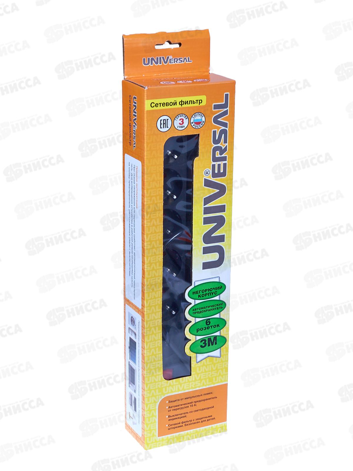 Сетевой фильтр UNIVersal ПВС 3*0,75 6 гнезд, 3м выключатель с заземлением,з/щ черный, 4003