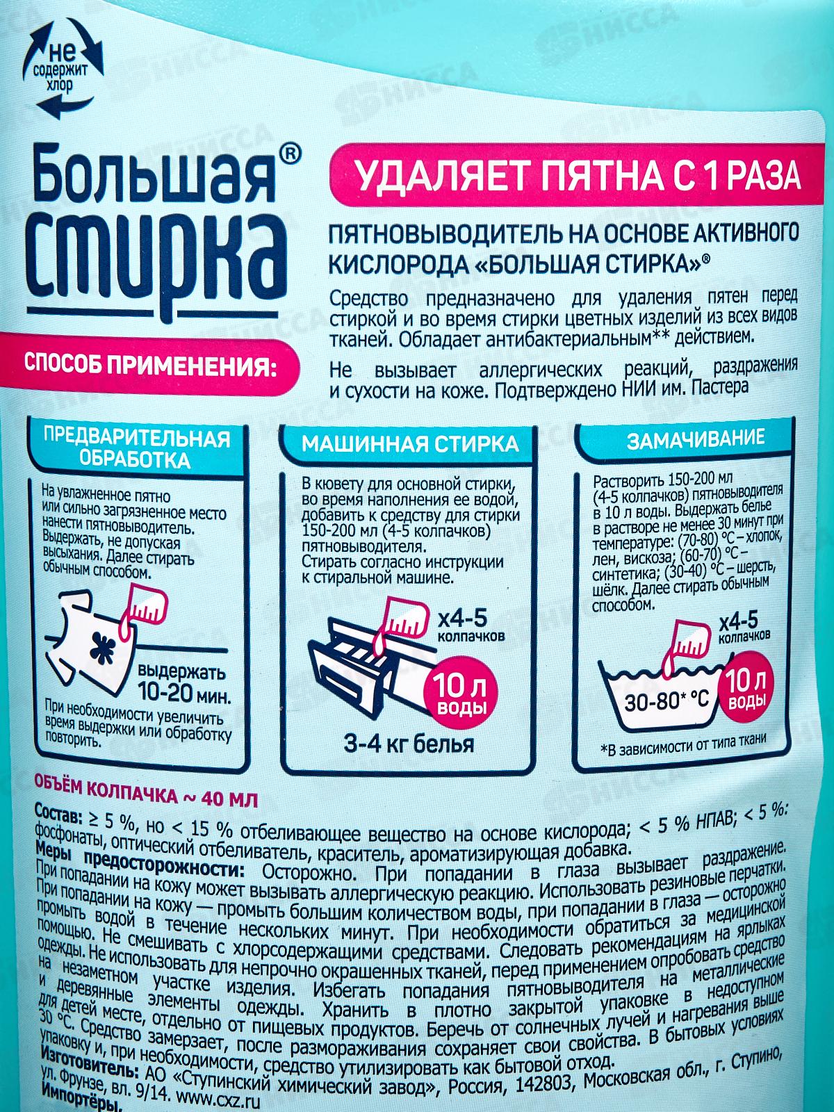 Большая Стирка пятновыводитель на основе актив кислорода 1000г *6