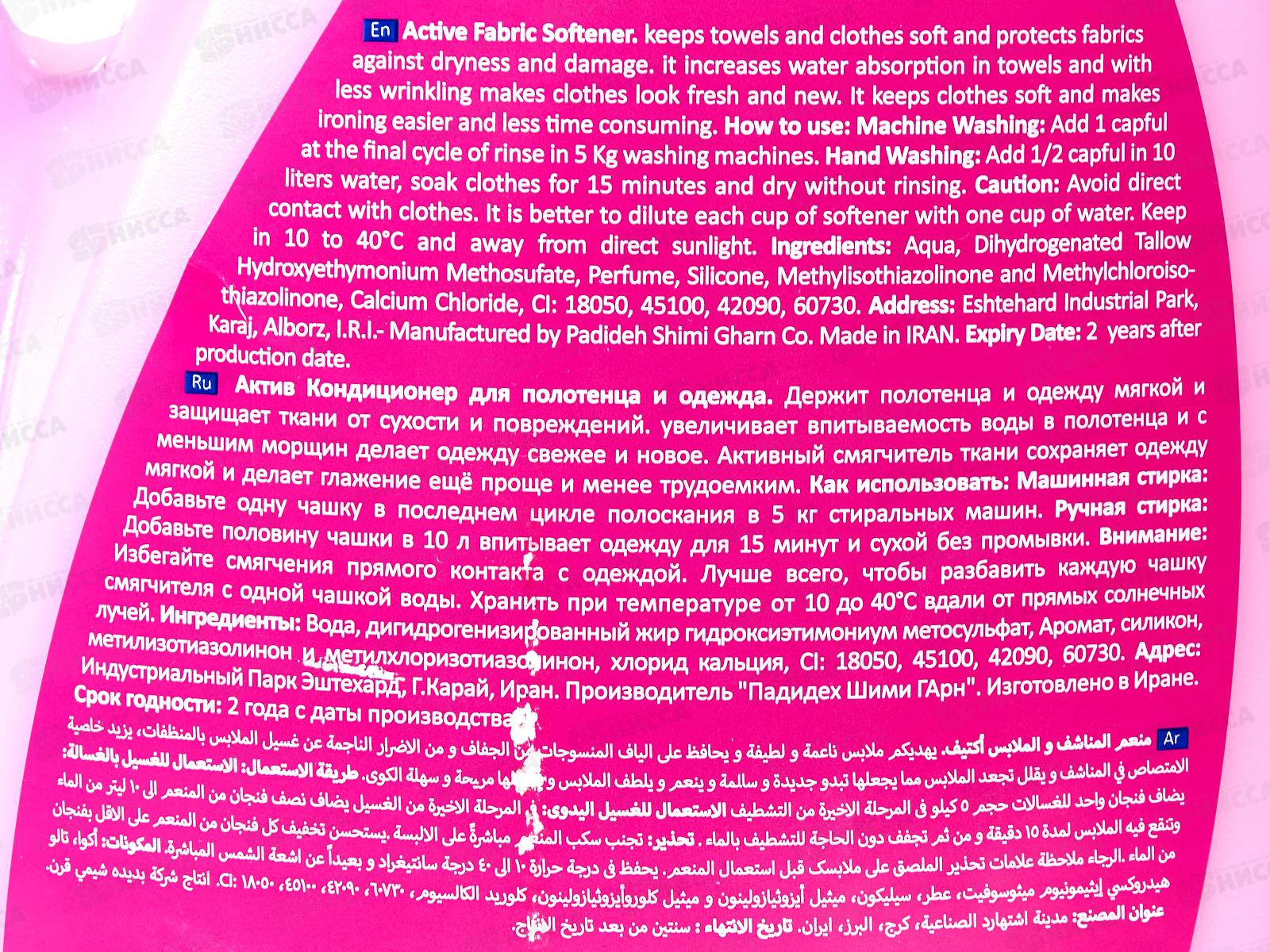 Концентрированный кондиционер-ополаскиватель для белья "Роза". Нейтрализует остатки средств для стирки на ткани. Помогает сохранить структуру ткани, защищая волокна от изнашивания и повреждения. Обладает антистатическим эффектом. Обеспечивает легкую глажку белья после стирки и высыхания. Для всех видов тканей. Дарит вещам свежий цветочный аромат. Состав: деионизированная вода, диалкиламмоний метосульфат, глицерин, аромат, изотиазолинон, хлористый кальций, CI:47005, 18050, 60730, 19140, 42090.
