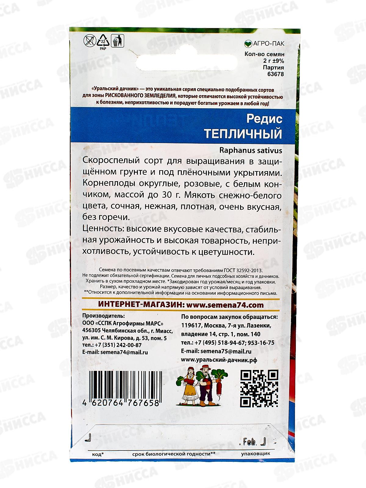 Редис Тепличный Евро *10 УрД +
