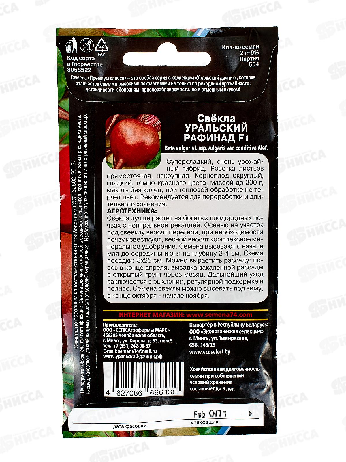 Свекла Уральский Рафинад F1 Евро *10 УрД +