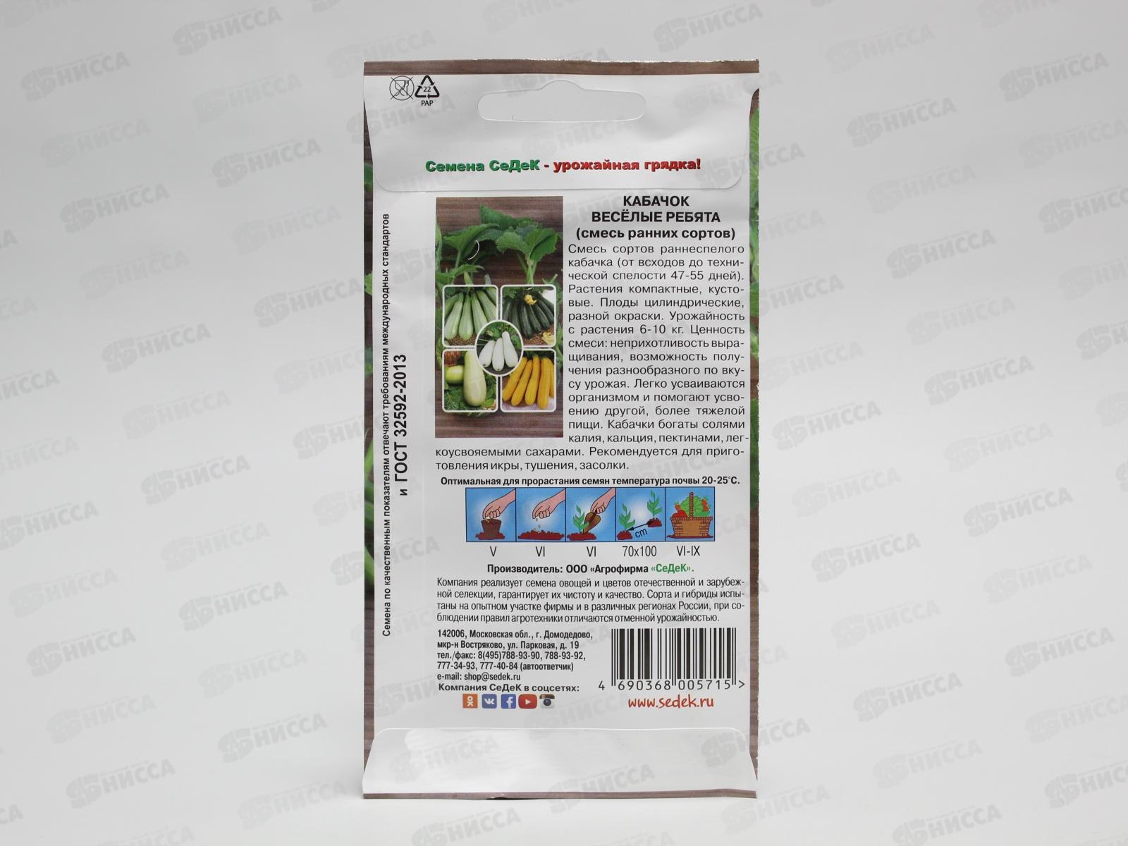Кабачок Веселые Ребята F1смесь ранних сортов (Евро,2, 9450) *10 СеДек +