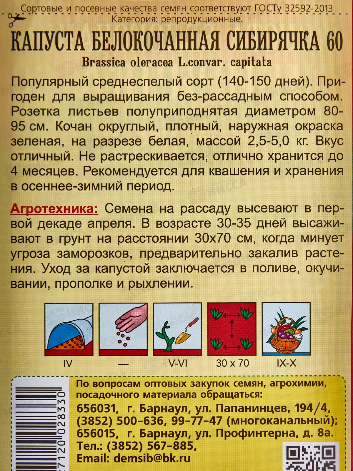 Капуста Сибирячка 60 (0,3гр) ДемСиб *10