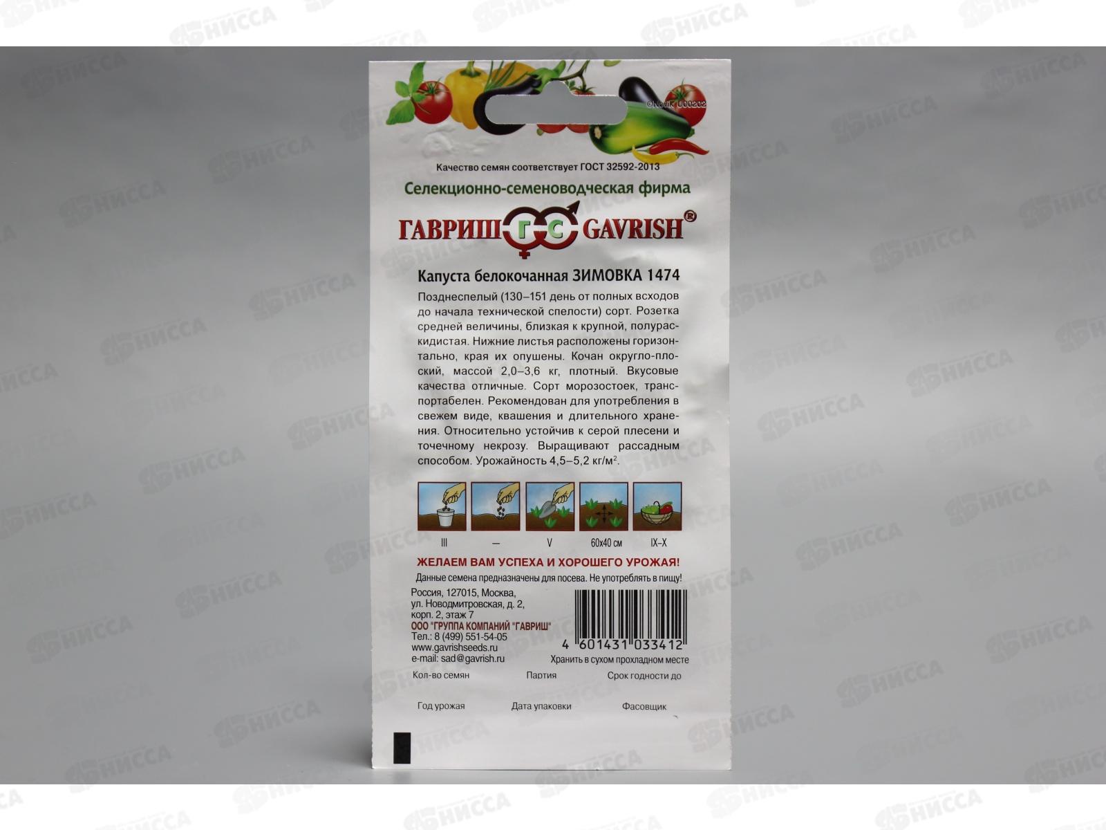 Капуста белокочанная Зимовка 1474 0,1 грамм для хранения Н11 *10 ГШ +