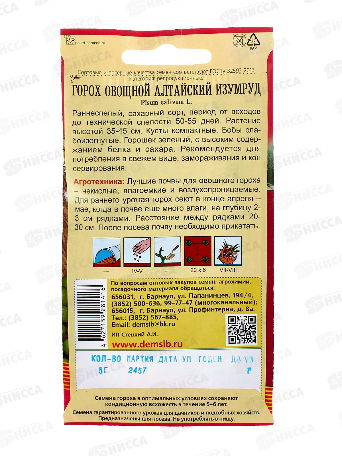 Горох Алтайский Изумруд (5гр) ДемСиб *10 +