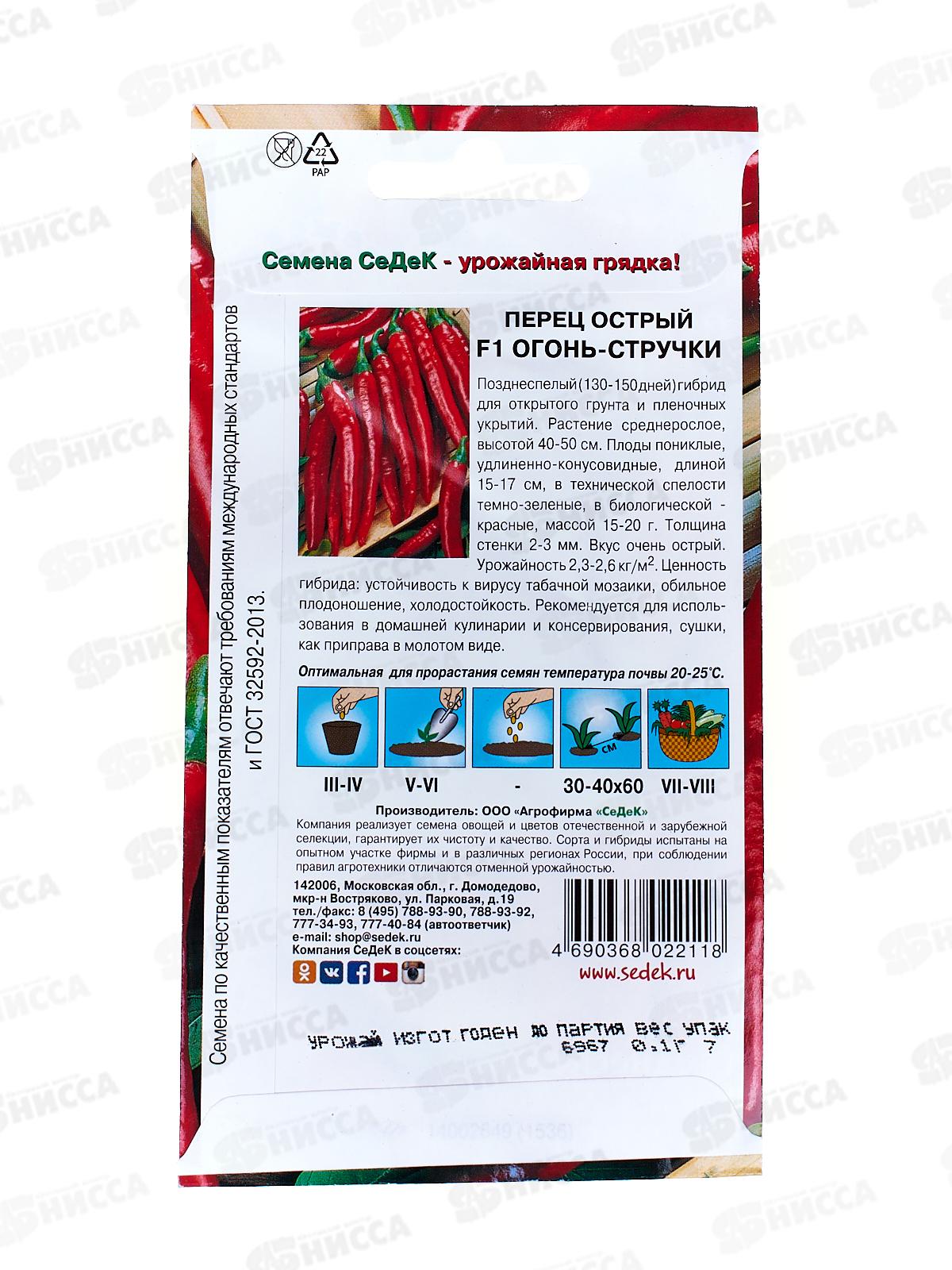 Перец Огонь-стручки F1 (острый) (Евро, 0,1) *10 СеДек