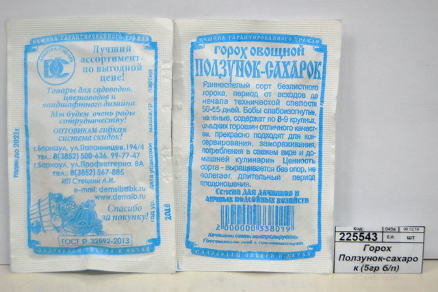 Горох Ползунок-сахарок (5гр белый пакет) ДемСиб *10 +