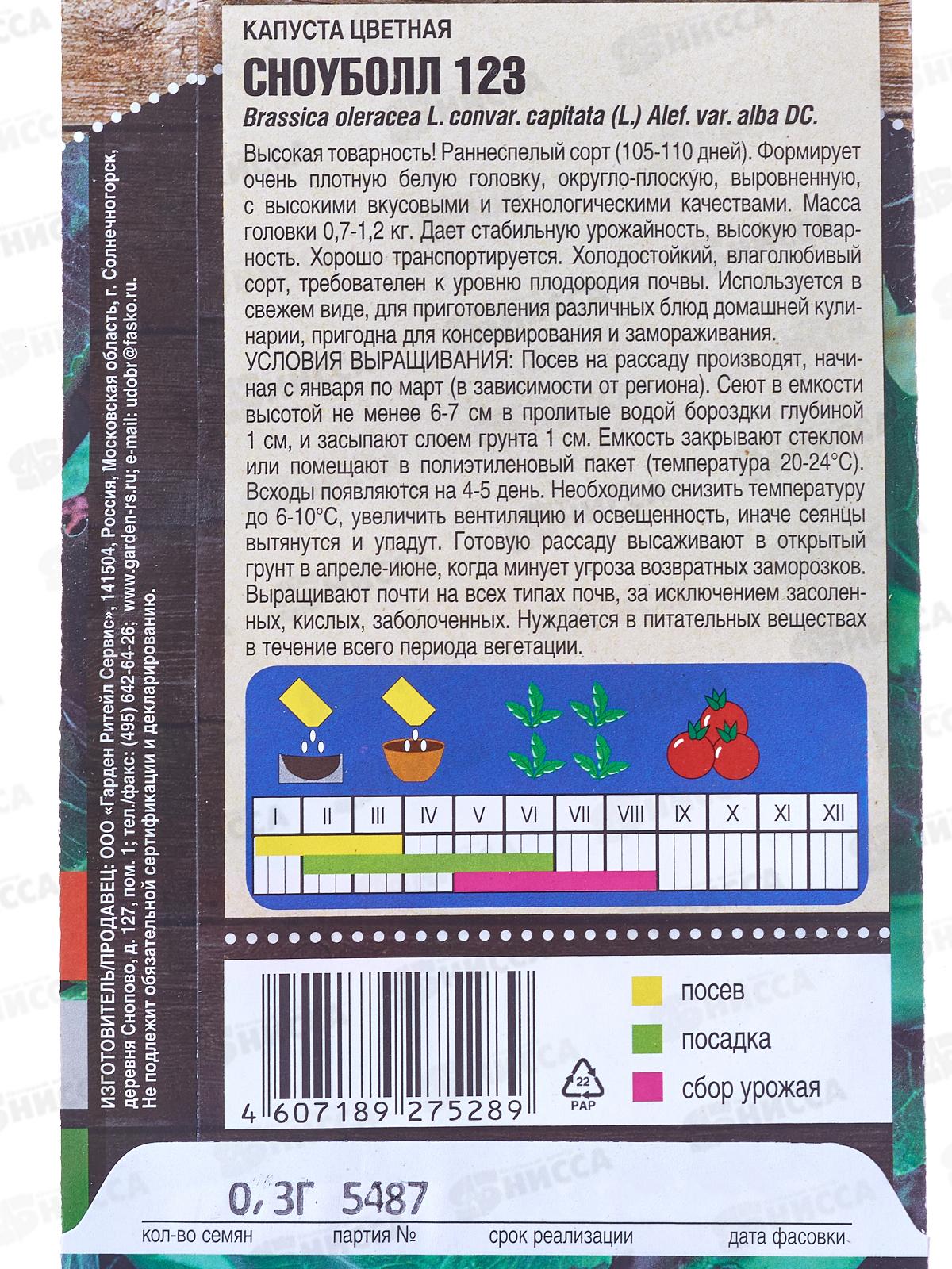 Капуста Сноуболл 123 цветная средняя 0,3 грамма *10 Т.П. +