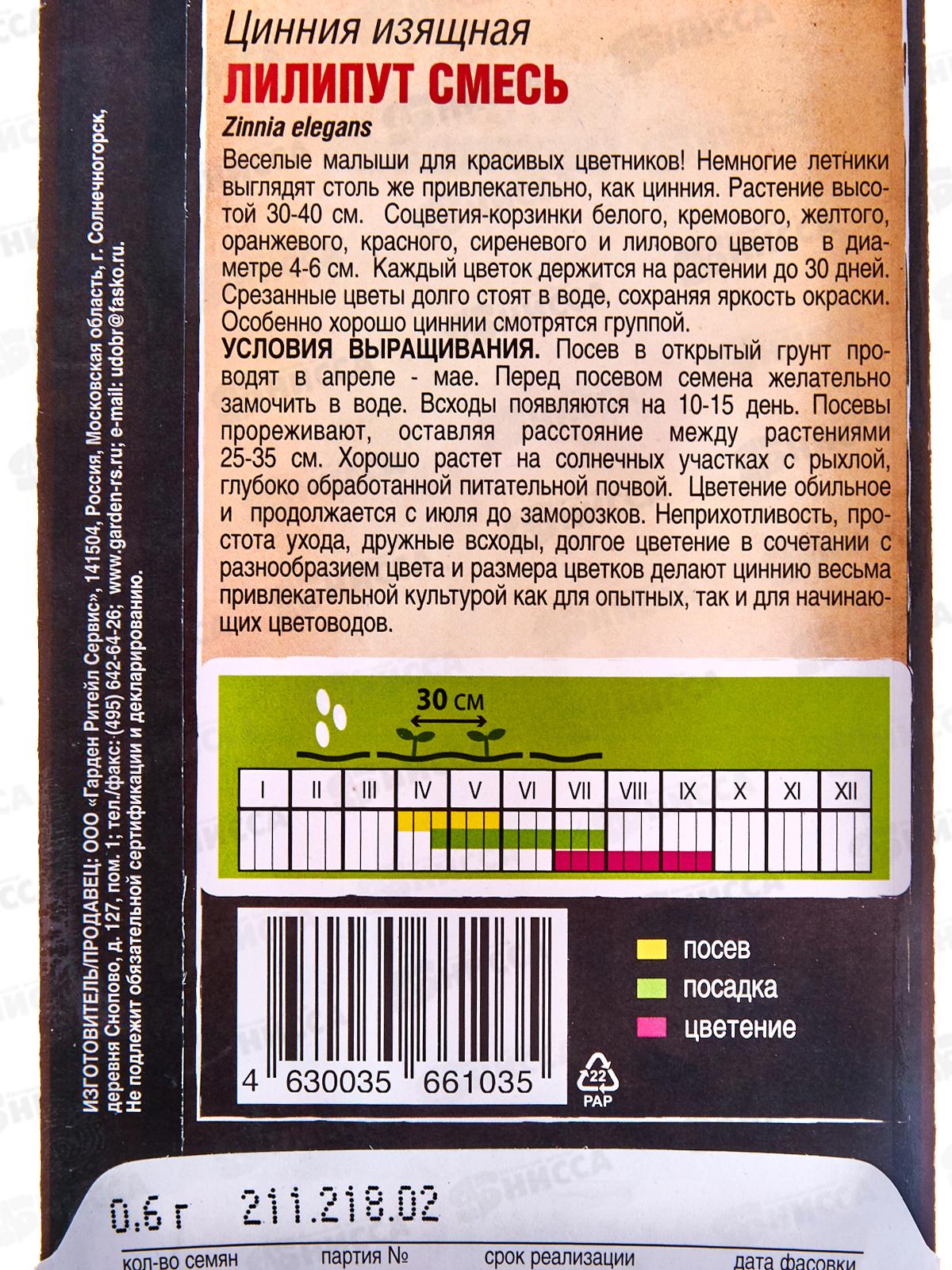Цинния Лилипут смесь 0,6 грамм двойная фасовка *10 Т.П. +