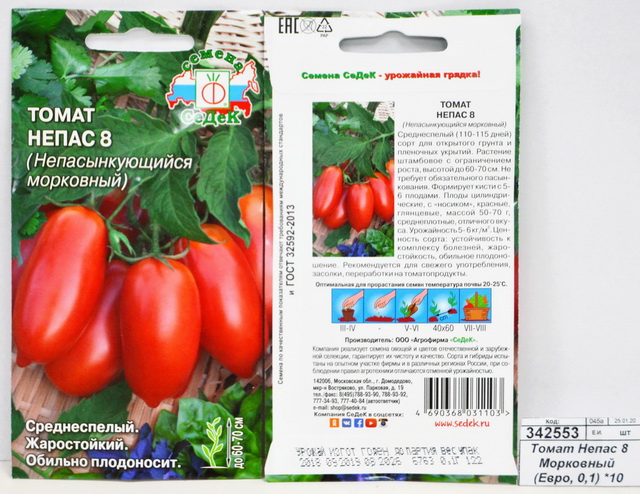 Томат Непас 8 Морковный (Евро, 0,1) *10 СеДек +
