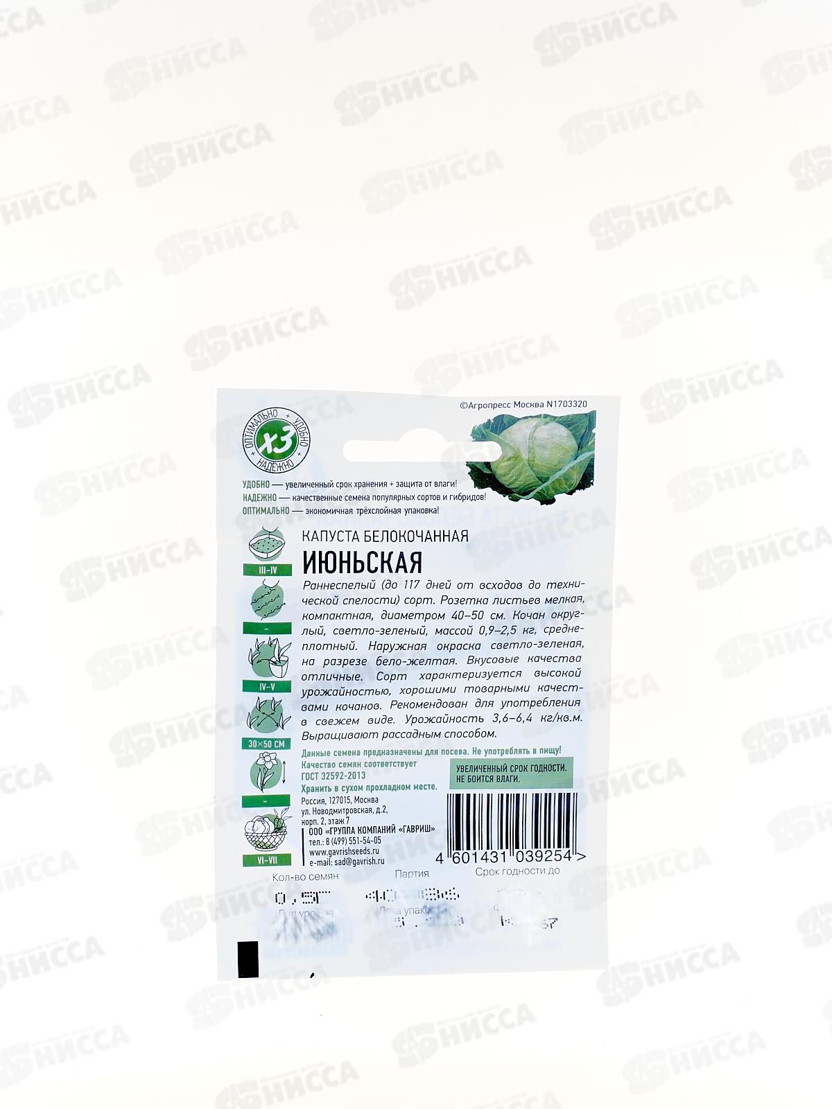 Капуста белокочанная Июньская 0,5г ранняя Б/П *20 ГШ +