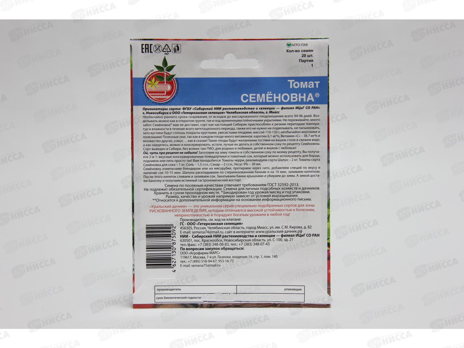 Томат Семеновна Евро *10 УрД +