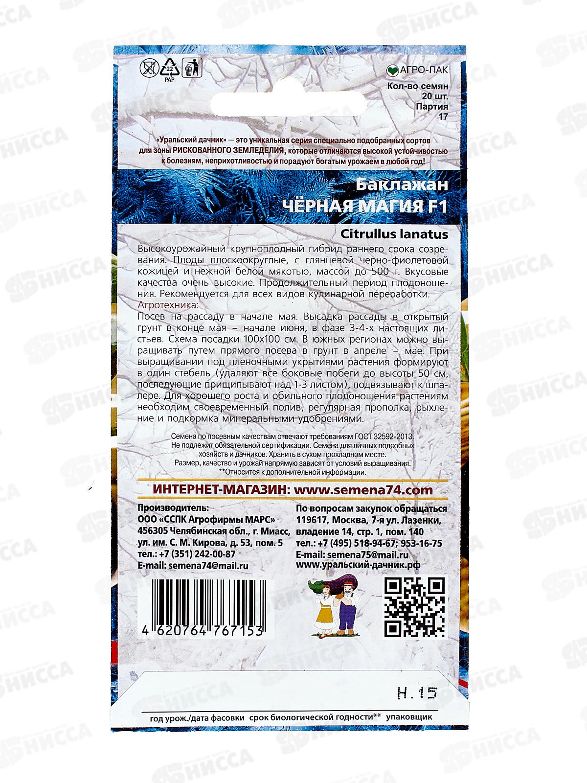 Баклажан Черная Магия F1 Евро *10 УрД +
