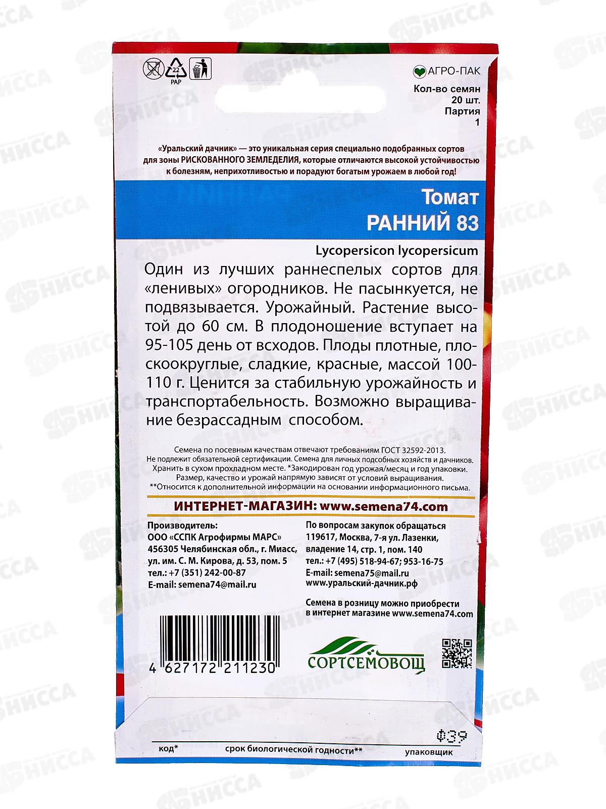 Томат Ранний 83 Евро *10 УрД +