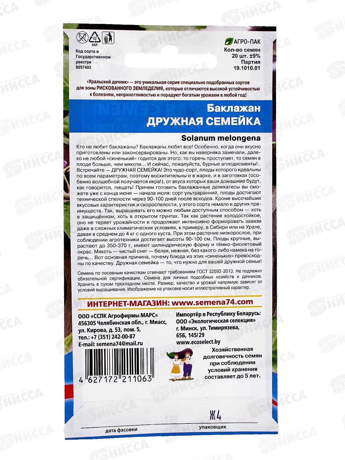 Баклажан Дружная семейка Евро *10 УрД +