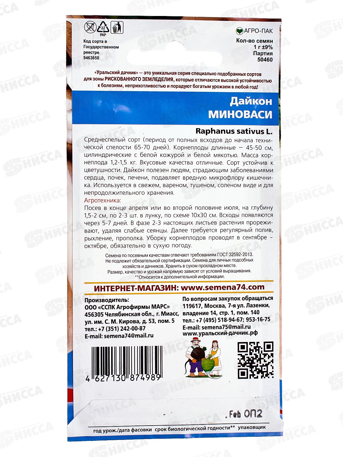 Дайкон МИНОВАСИ — Не уходит в стрелку! Вкус деликатесный, массой до 1 кг! Помогает при болезнях почек, печени, угнетает вредную микрофлору в кишечнике! Очень урожайный раннеспелый сорт с отличной лёжкостью. Не стрелкуется. Корнеплод цилиндрический, до 70 см, мякоть белая, плотная, нежная, сочная, без горечи.