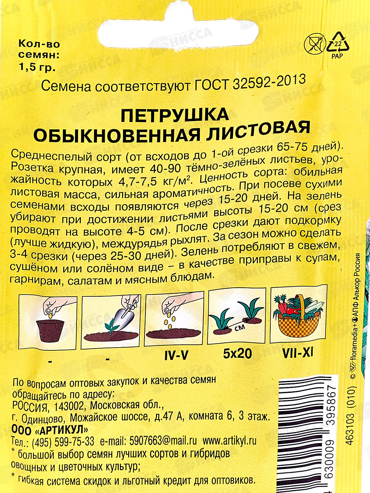Петрушка Обыкновенная Листовая 1,5г лам/п *10 АРТ +
