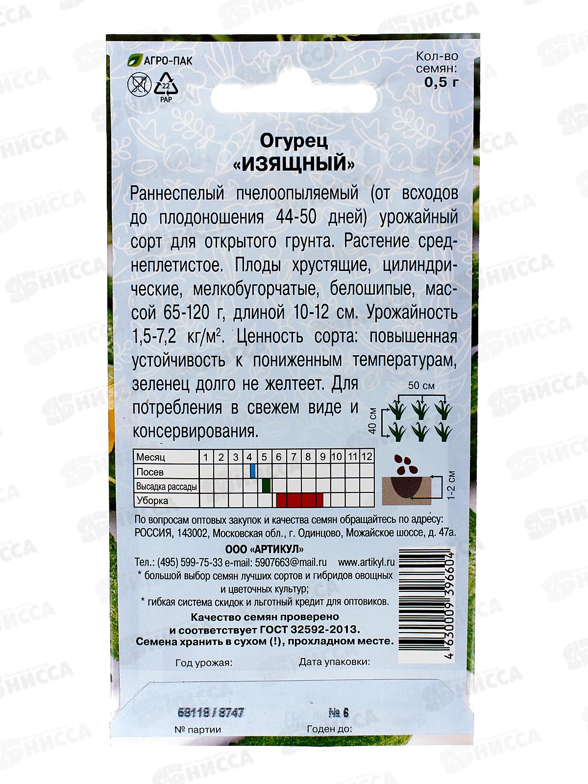 Огурец Изящный 0,5г цв/п *10 АРТ +