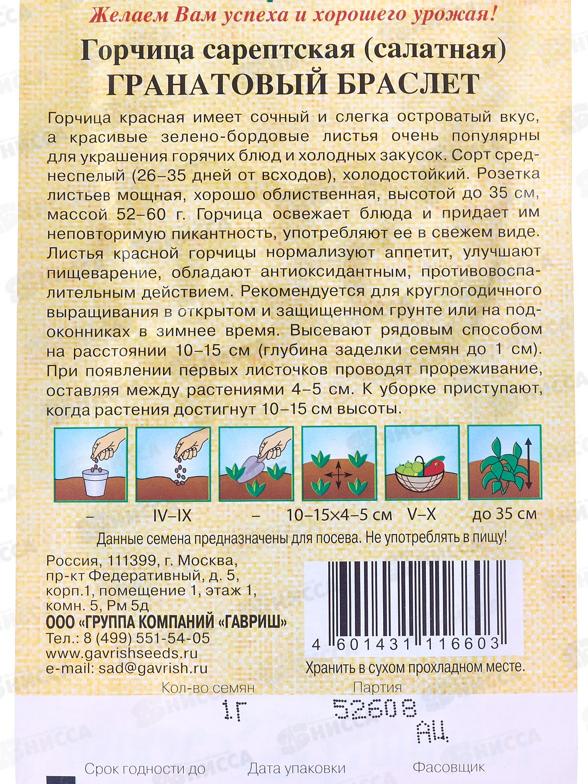 Горчица Листовая Гранатовый Браслет 1г автор Н22 *10 ГШ