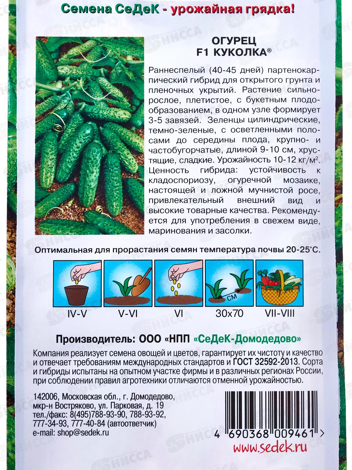 Огурец Куколка F1 (Евро, 0,2) СеДек *10 +