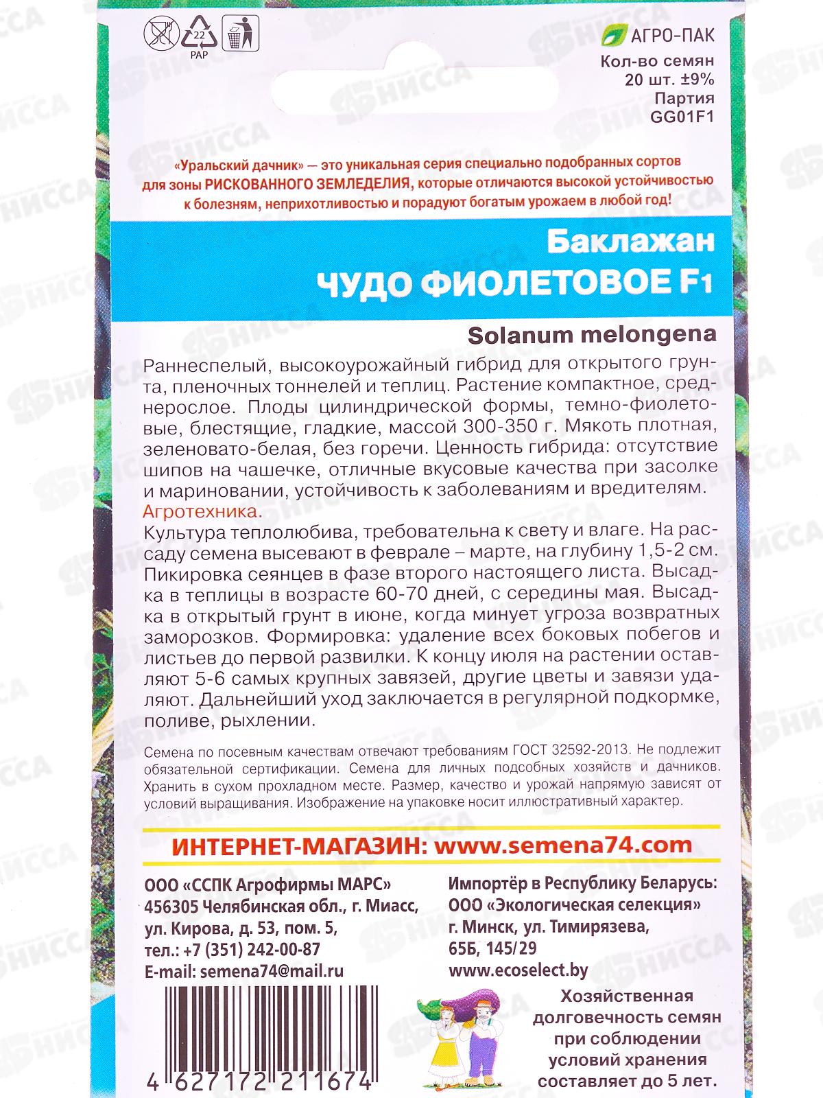 Баклажан Чудо фиолетовое F1 Евро *10 УрД +