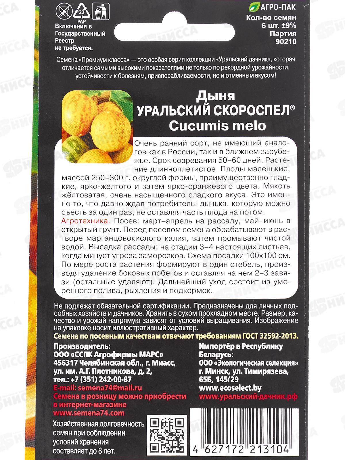 Дыня Уральский скороспел Евро *10 УрД +