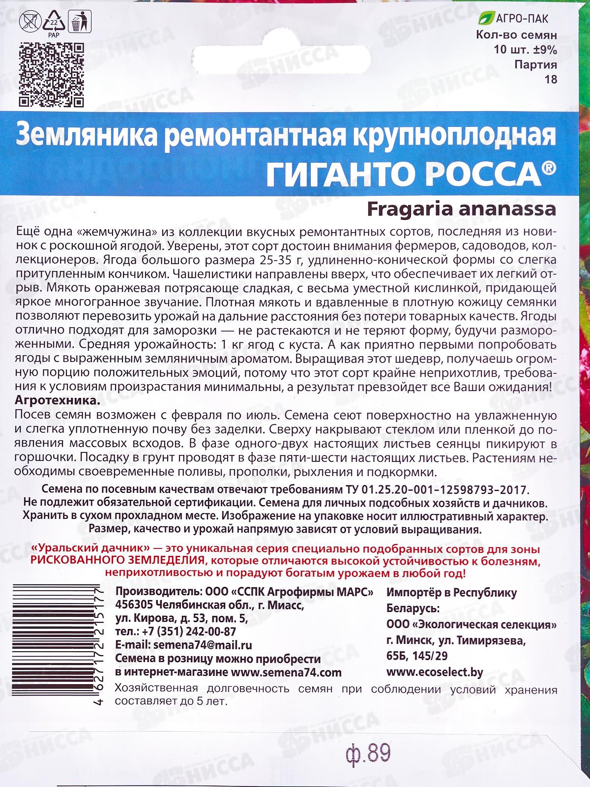 Земляника Гиганто росса-ремонтантная Евро *10 УрД +