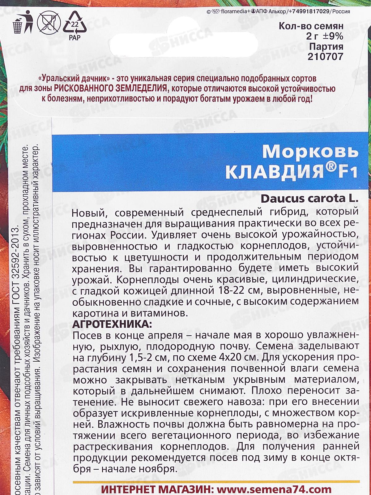 Морковь Клавдия F1 Евро *10 УрД +