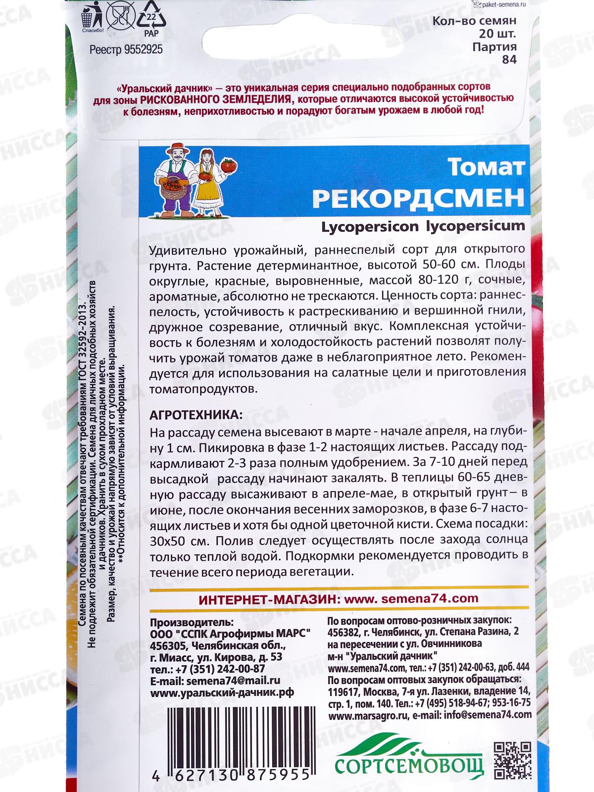 Томат Рекордсмен Евро *10 УрД!!!