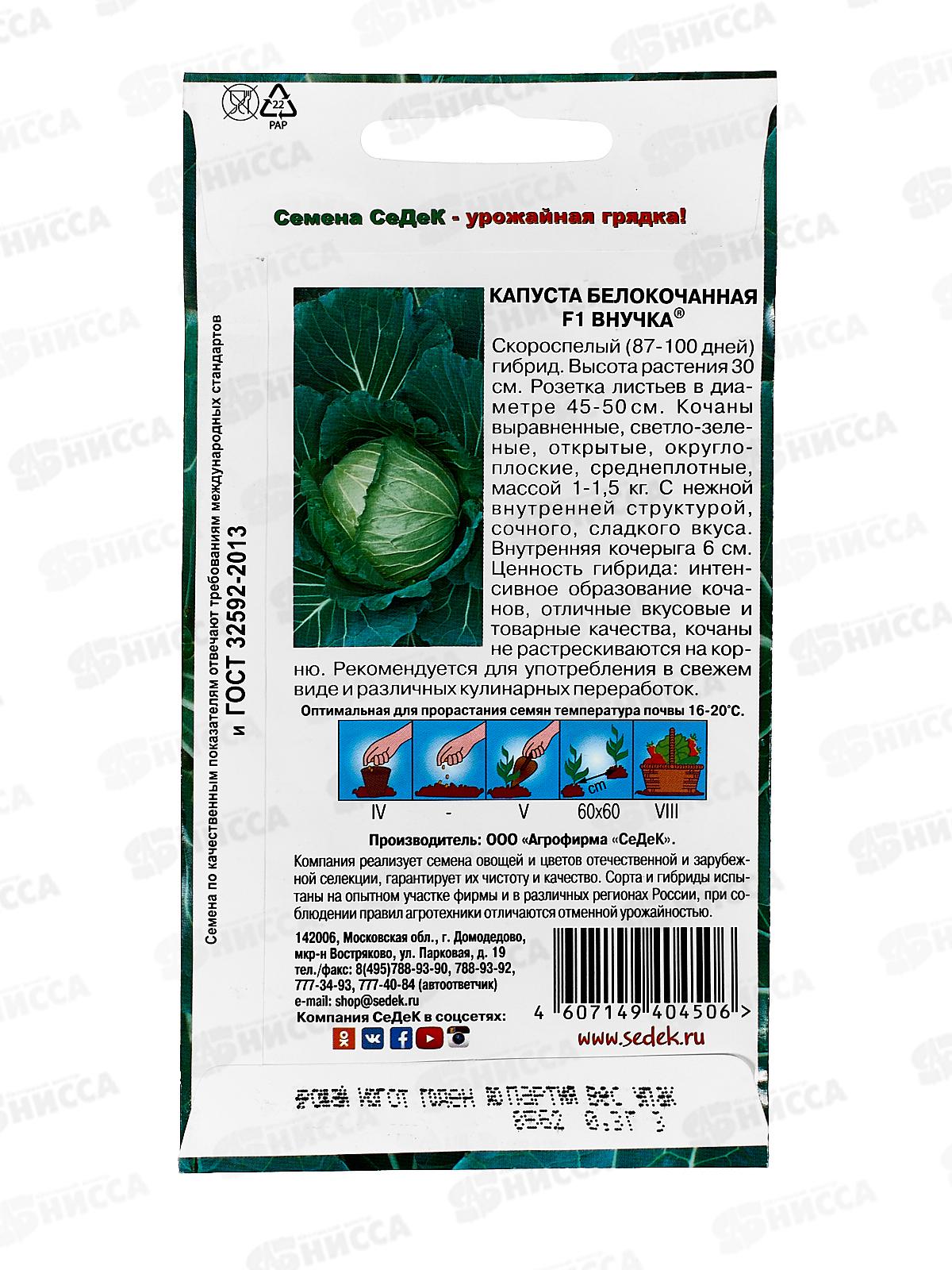 Капуста Внучка F1 белокочанная (Евро, 0,3) СеДек +