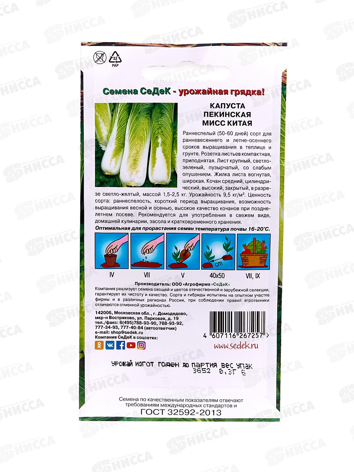 Капуста пекинская Мисс Китая (Евро, 0,3 5072) СеДек +
