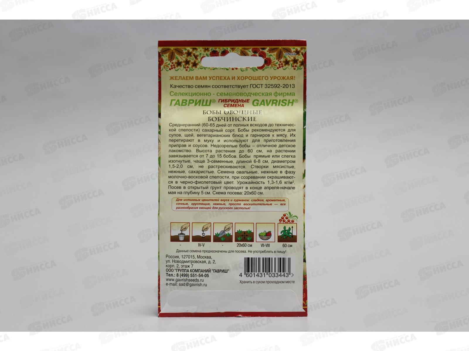 Сегодня нечасто встретишь на обеденном столе блюдо из бобов. Этот незаслуженно забытый овощ обладает высокой пищевой ценностью. По содержанию белка может соперничать с мясом и вполне заменить его в рационе человека. Бобы рекомендуются для супов, щей, вегетарианских блюд и гарниров к мясу. Их перетирают в муку и используют для приготовления приправ и соусов. Одним из известных сортов овощных бобов авторской селекции «Гавриш» являются бобы Бобчинские. Это среднеранний (60-65дней от полных всходов до технической спелости), сахарный сорт. Высота растения до 60 см, на растении завязывается от 7 до 15 бобов. Бобы прямые или слегка изогнуты, чаще 3 семенные, длиной 6-8 см, диаметром 1,5-2,0 см, не растрескиваются. Створки мясистые, нежные, сахаристые. Посев в открытый грунт проводится в конце апреля-начале мая, на глубину 5 см. Схема посева: 20x60 см.