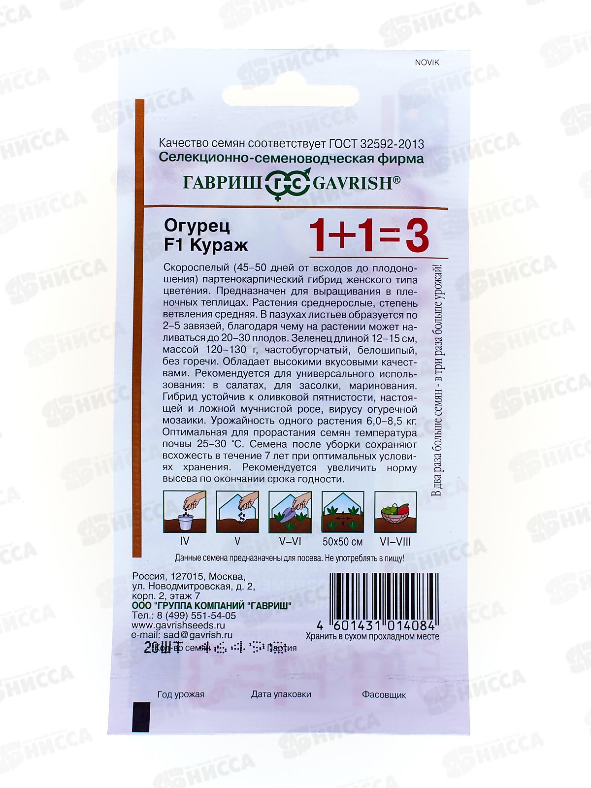 Огурец Кураж F1 сер 1+1 20шт автор. *5 ГШ +