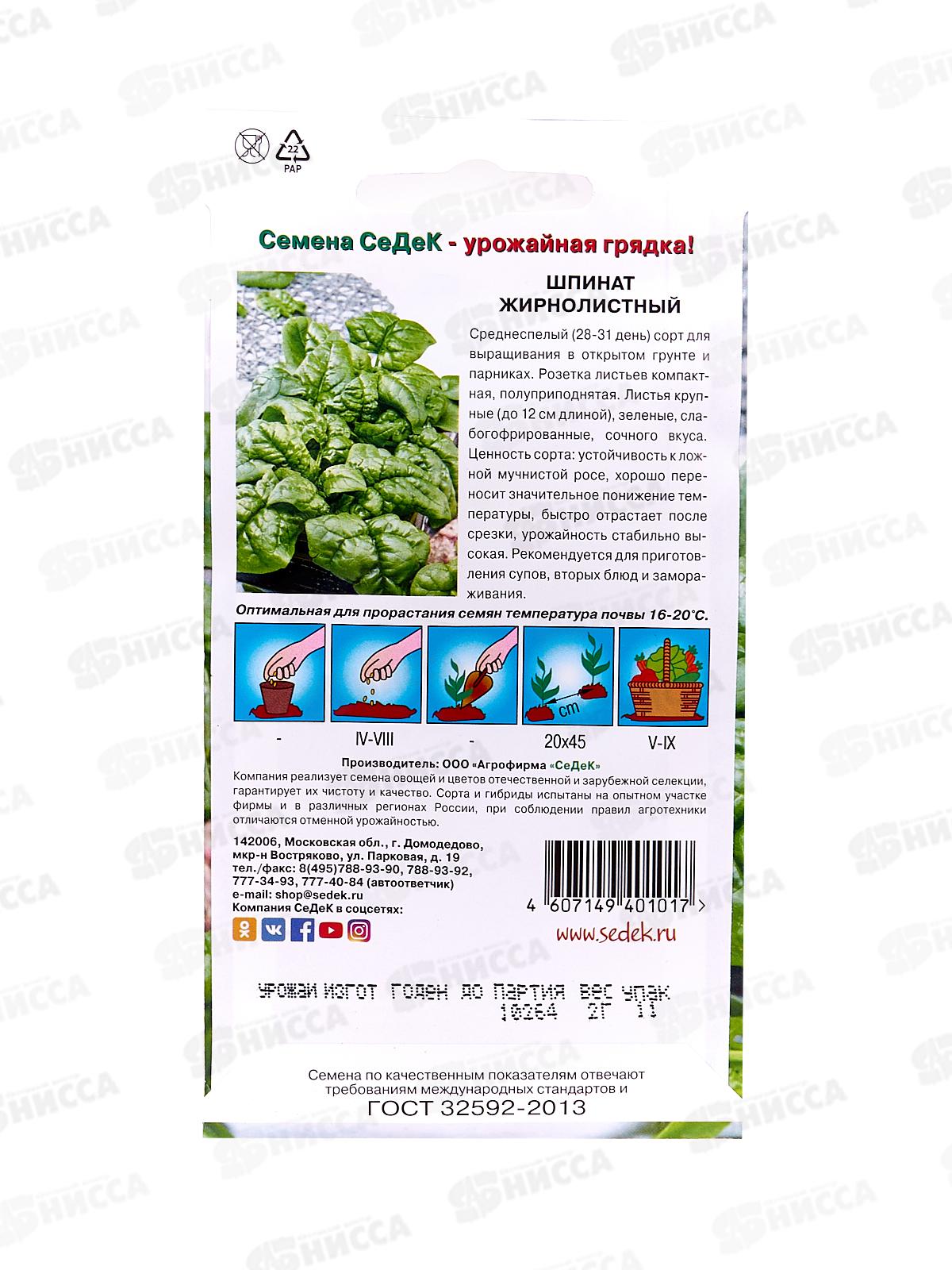 Шпинат Жирнолистный (Евро, 2 8098) СеДек +