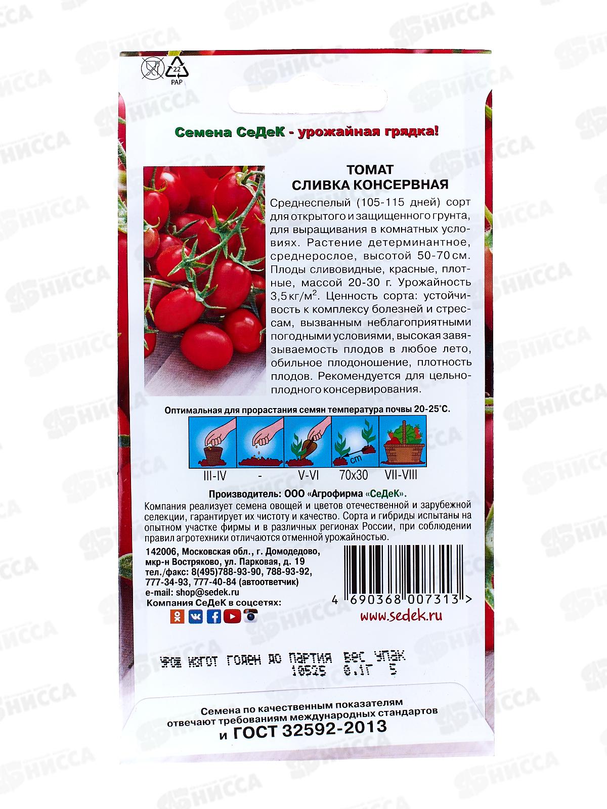 Томат Сливка Консервная открытый грунт (Евро,0,1) СеДек