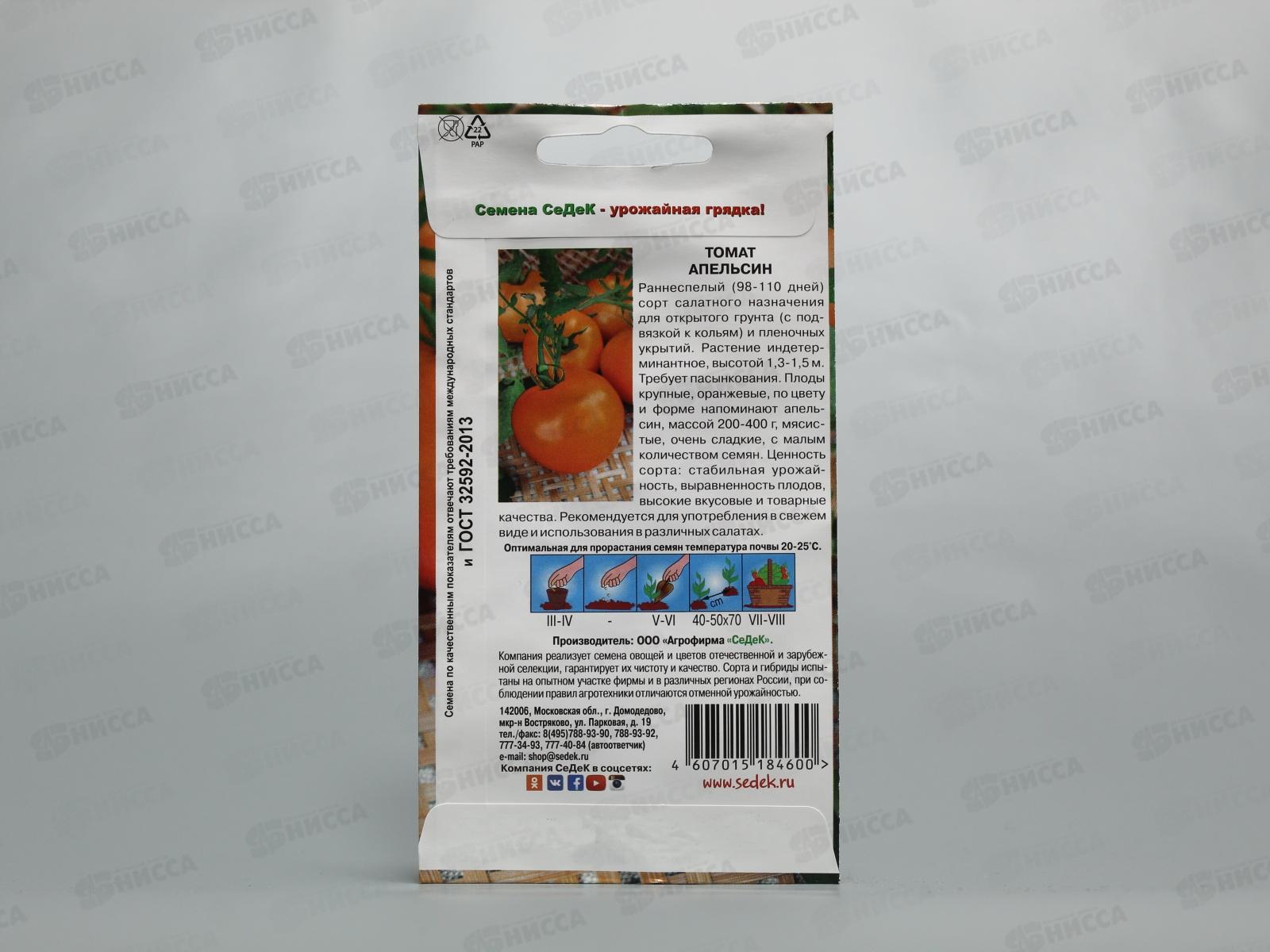 Раннеспелый (98-110 дней) сорт салатного назначения для открытого грунта (с подвязкой к кольям) и пленочных укрытий. Растение индетерминантное, высотой 1,3-1,5 м. Требует пасынкования. Плоды крупные, оранжевые, по цвету и форме напоминают апельсин, массой 200-400 г, мясистые, очень сладкие, с малым количеством семян. Ценность сорта: стабильная урожайность, выравненность плодов, высокие вкусовые и товарные качества. Рекомендуется для употребления в свежем виде и использования в различных салатах.