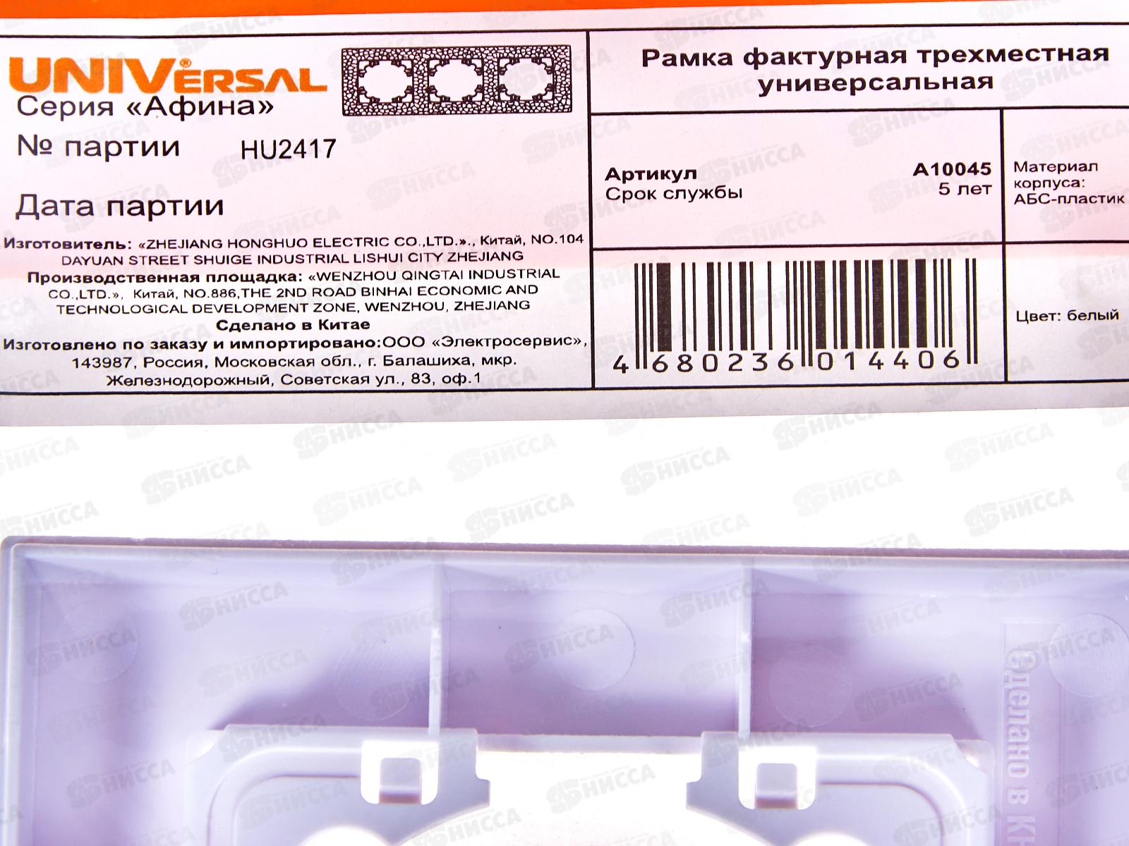 Рамка Афина трехместная фактурная универсальная белая, А10045*10