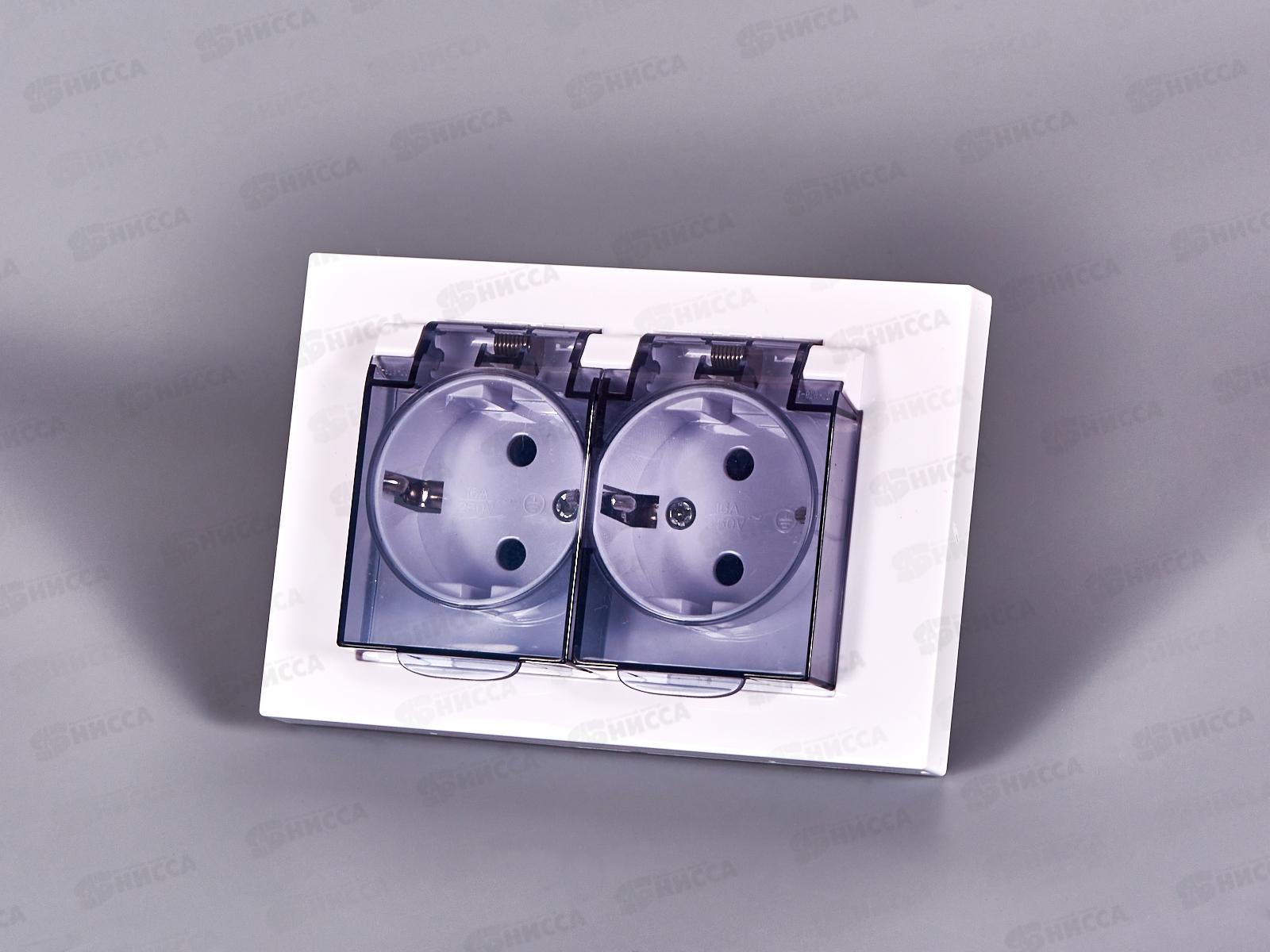 Розетка Афина 2-местная с крышкой скрытой установки, с заземлением 16А, 220В, белая, A0031*10
