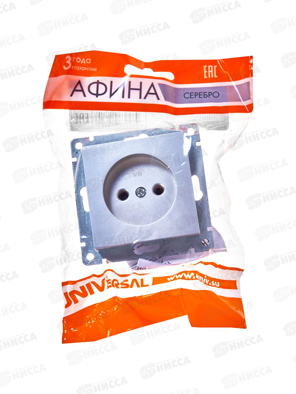 Розетка Афина 1-местная скрытой установки, без заземления, 16А, 220В серебро, A0022-S*10