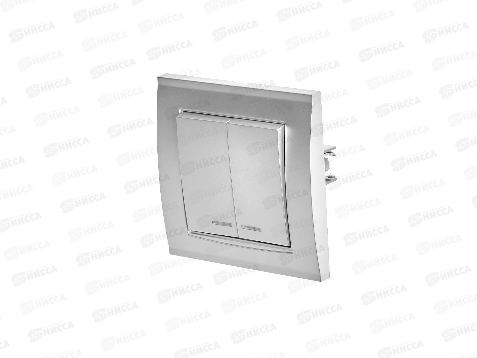 Выключатель Бриллиант 2-клавиши скрытой установки, 10А, 220В, подсветка,серебро, 7949667*10