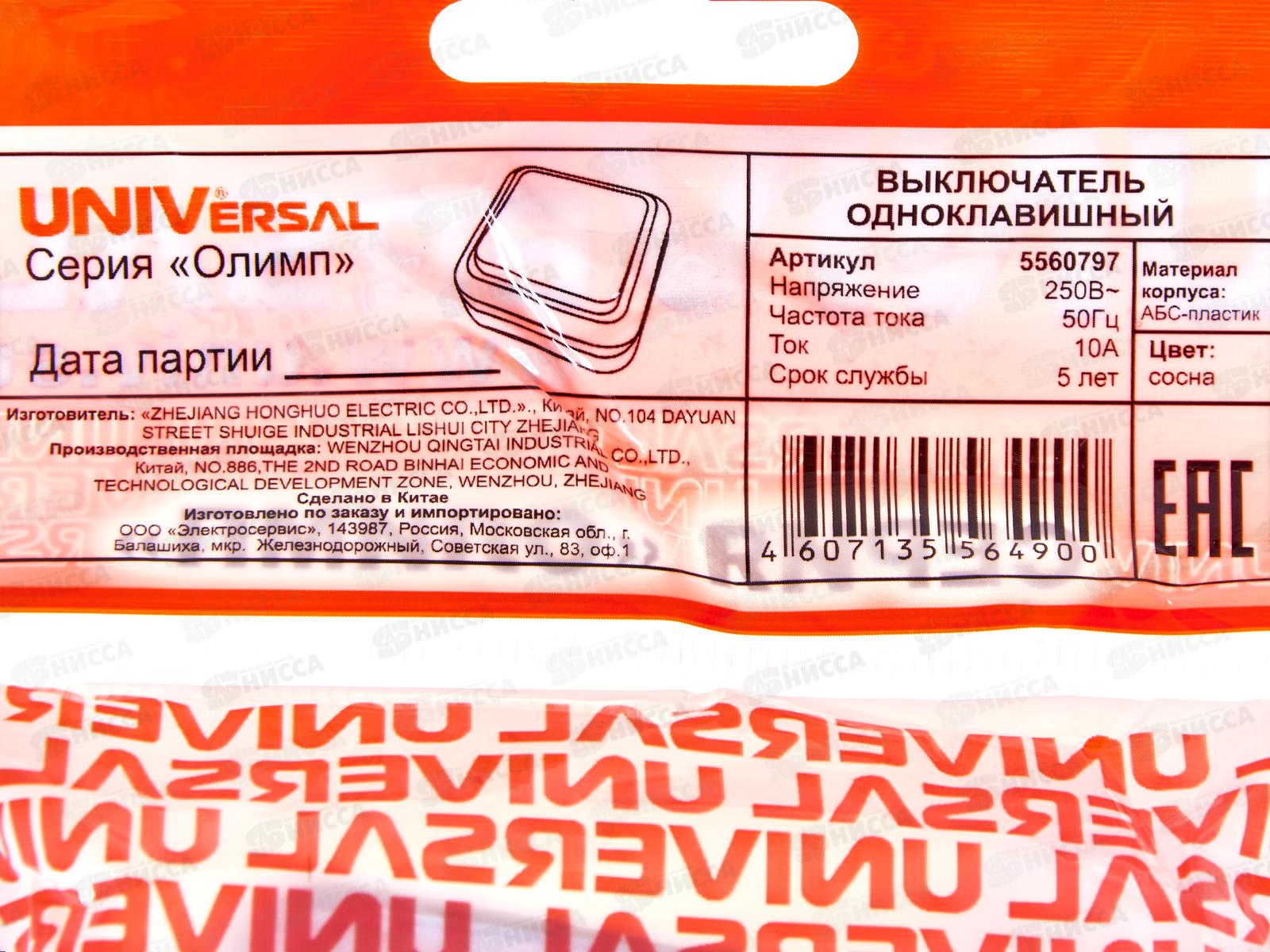 Выключатель ОЛИМП 1-клавиша открытой установки, 10А, 220В, сосна, 5560797 *10