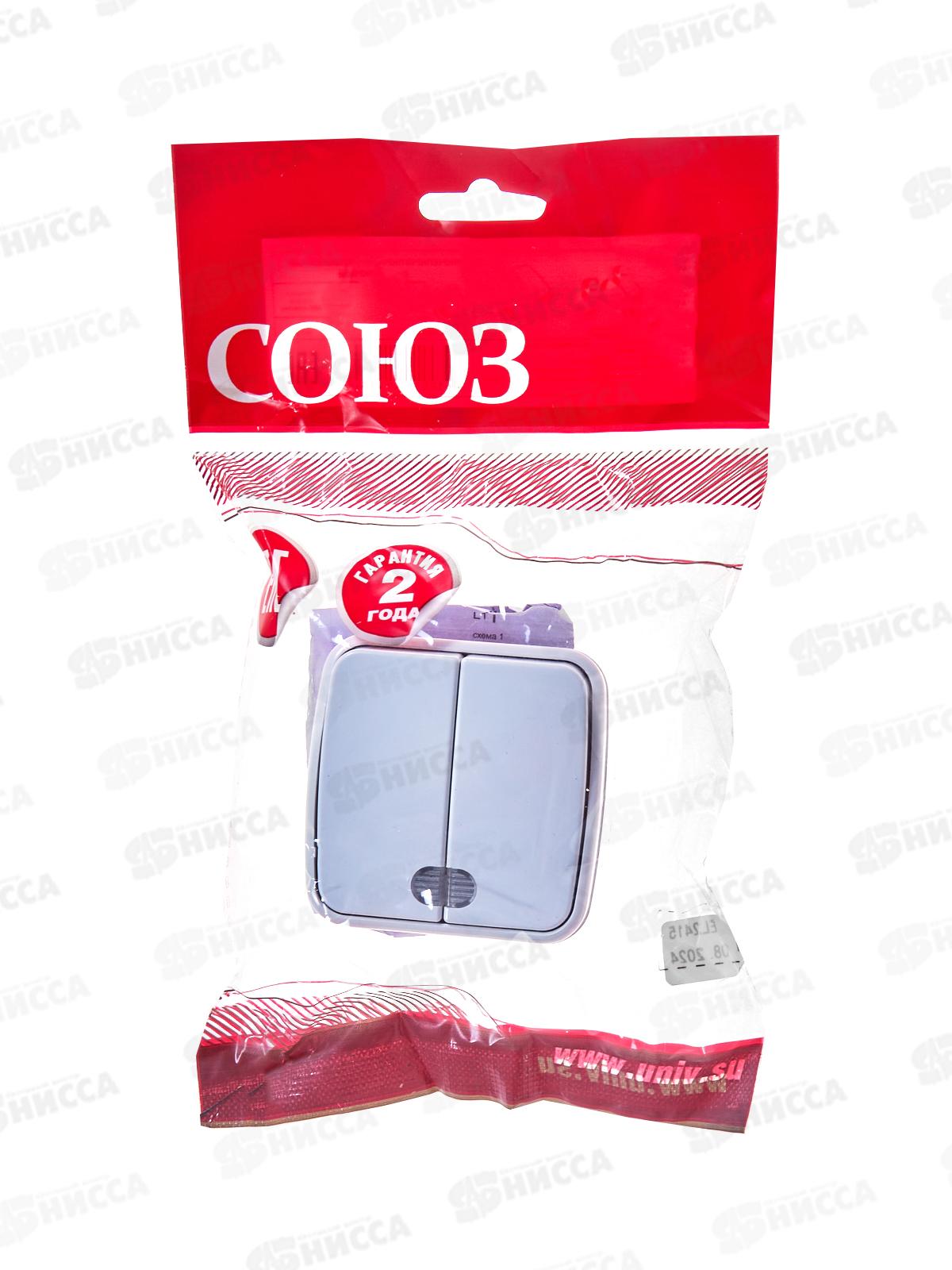 Выключатель СОЮЗ 2-клавиши Электра, открытой установки, 10А, 220В, подсветка, белый,0030*10