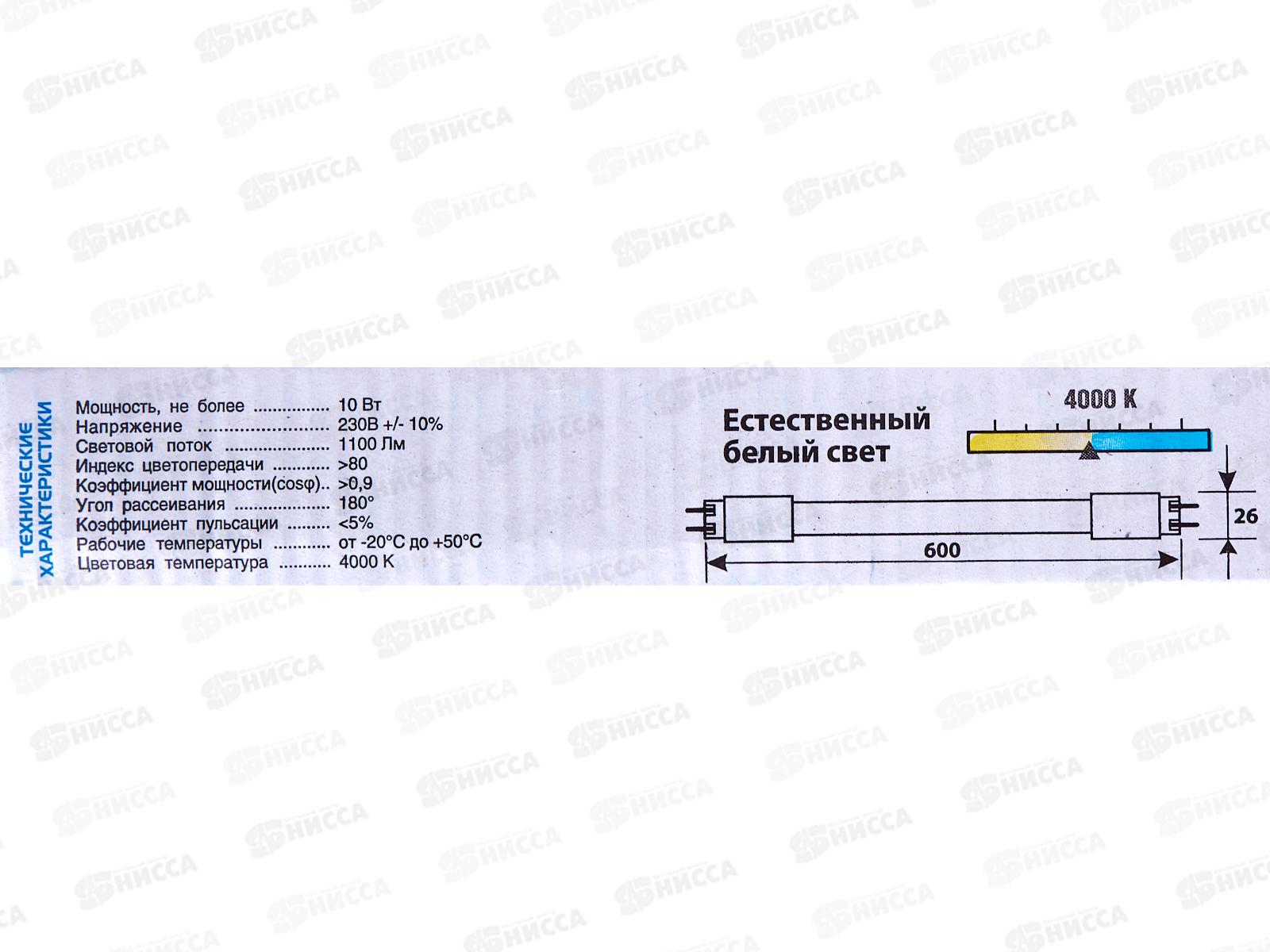 Лампа светодиодная IONICH труб.ILED-SMD2835-Т8600-10Вт-1100Лм-230В-4000КG13,1509