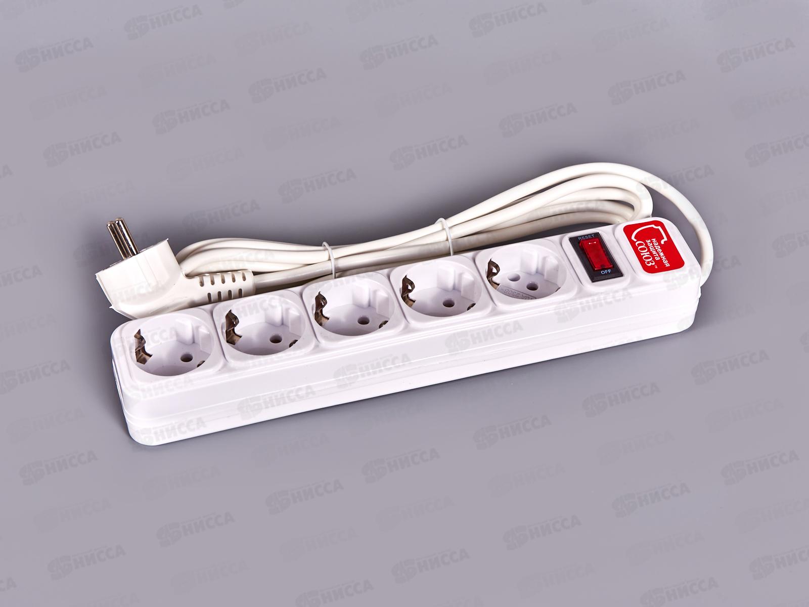 Сетевой фильтр СОЮЗ ПВС 3*0,75 5 гнезд, 3 м выключатель с идикатором , с/з, белый