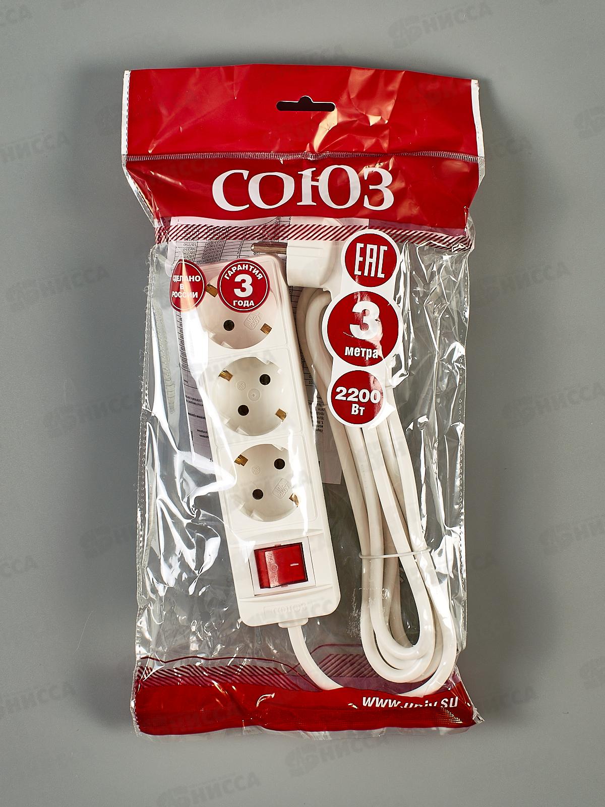 Удлинитель бытово СОЮЗ 2200ВТ 3гн. ПВС , с/pз, выкл, 3 м, 481S-7303