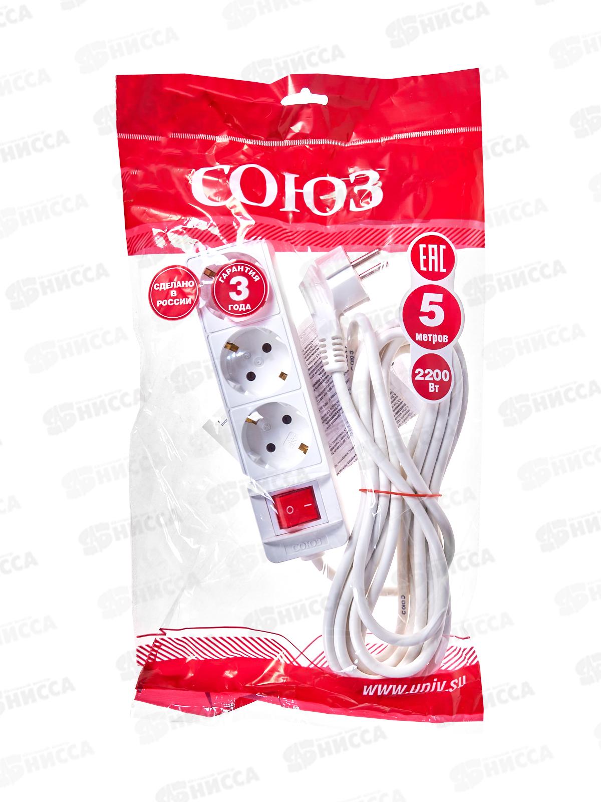 Удлинитель бытово СОЮЗ 2200ВТ 3 гнезда. ПВС , с/pз, выкл, 5 м, 481S-7305