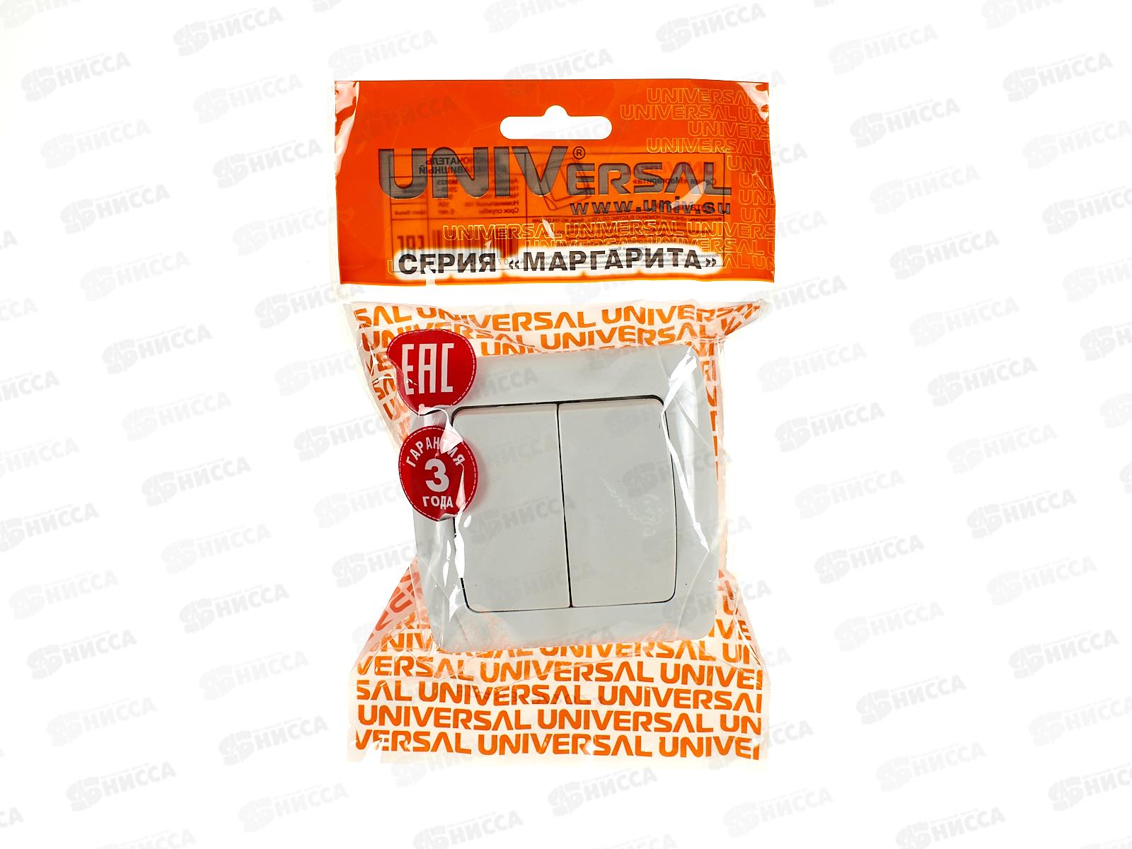 Выключатель Маргарита 2-клавиши скрытой установки, 10А, 220В белый, М0023*10