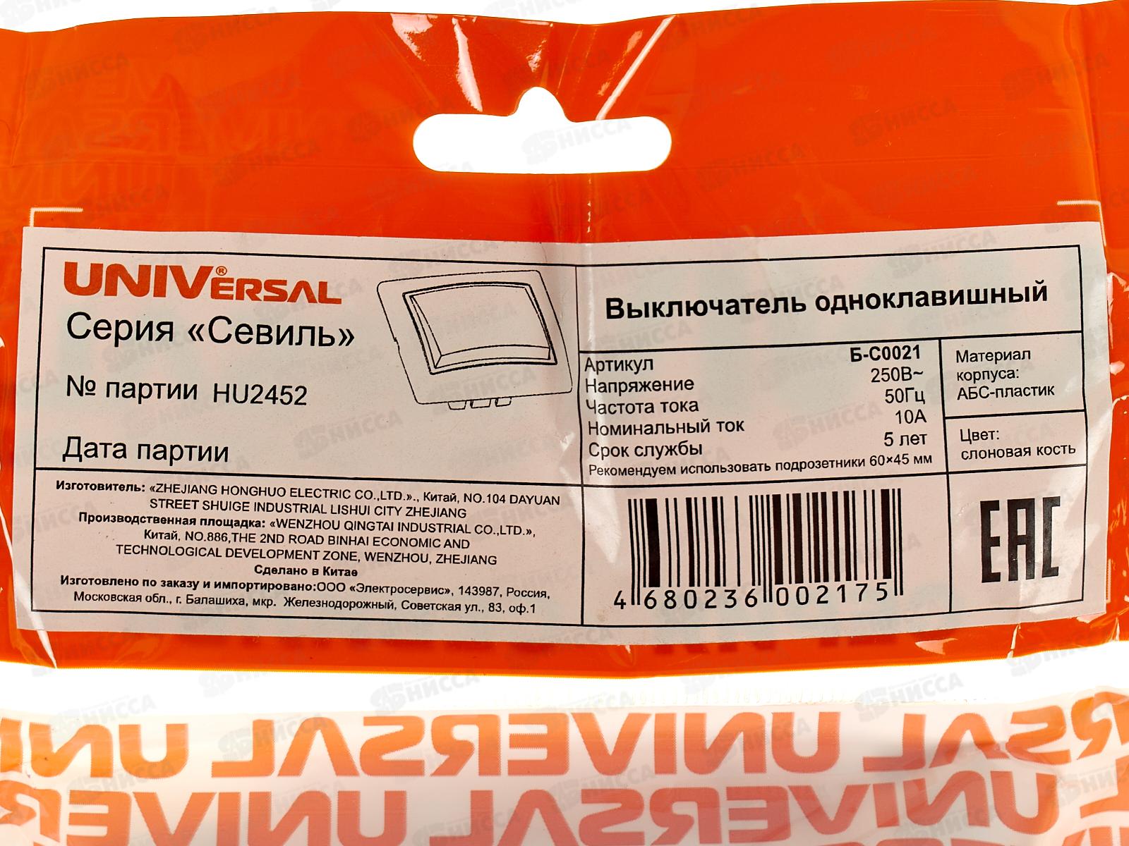 - Производитель: UNIVersal (электрика)