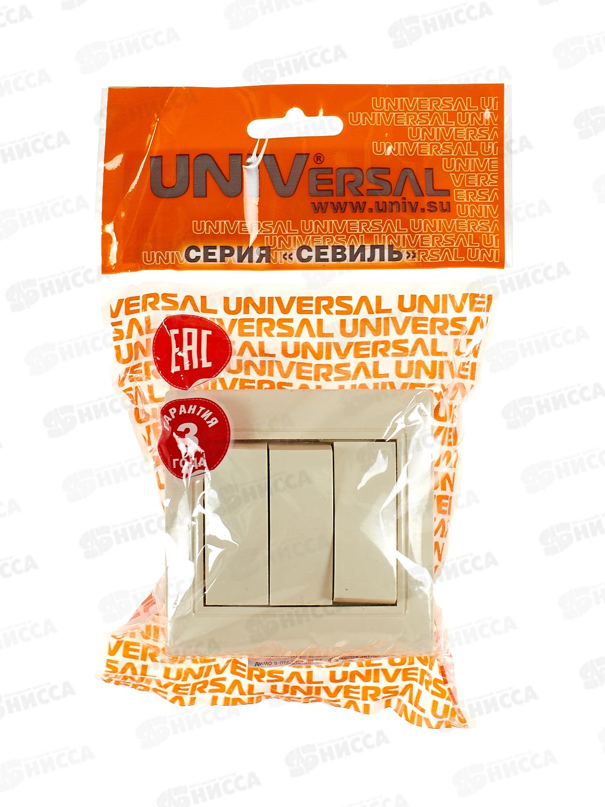 Выключатель Севиль 3-клавиш скрытой установки, 10А, 220В слоновая кость, Б-С0043 *10