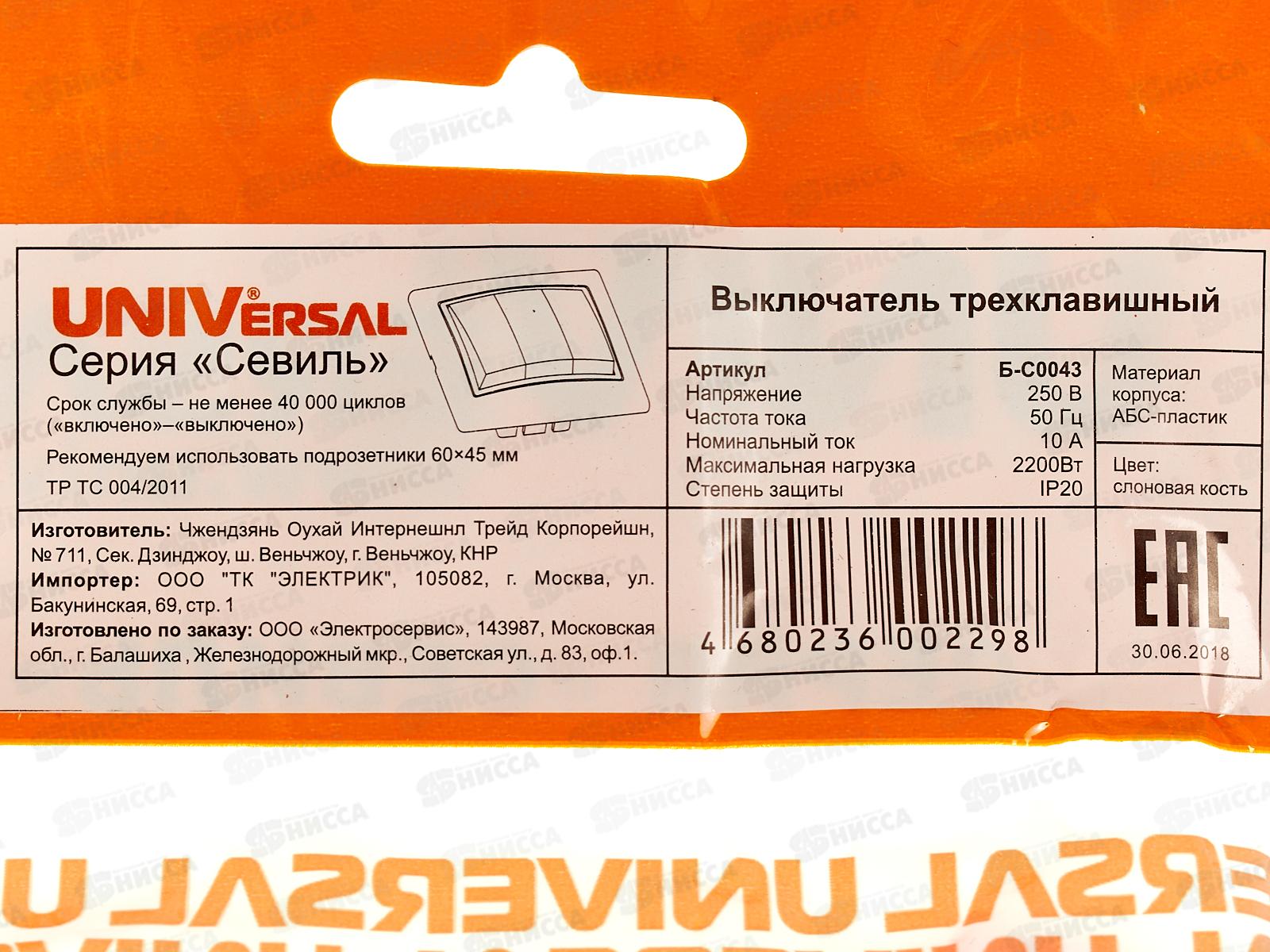 - Производитель: UNIVersal (электрика)